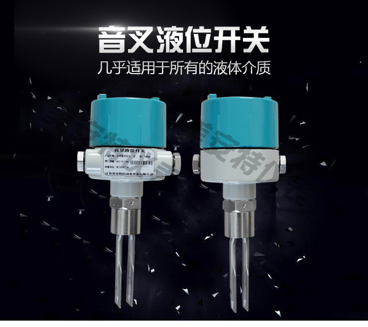 音叉液位开关是液位控制开关的一种。音叉由晶体激励产生振动,当音叉被液体浸没时振动频率发生变化,这个频率变化由电子线路检测出来并输出一个开关量。